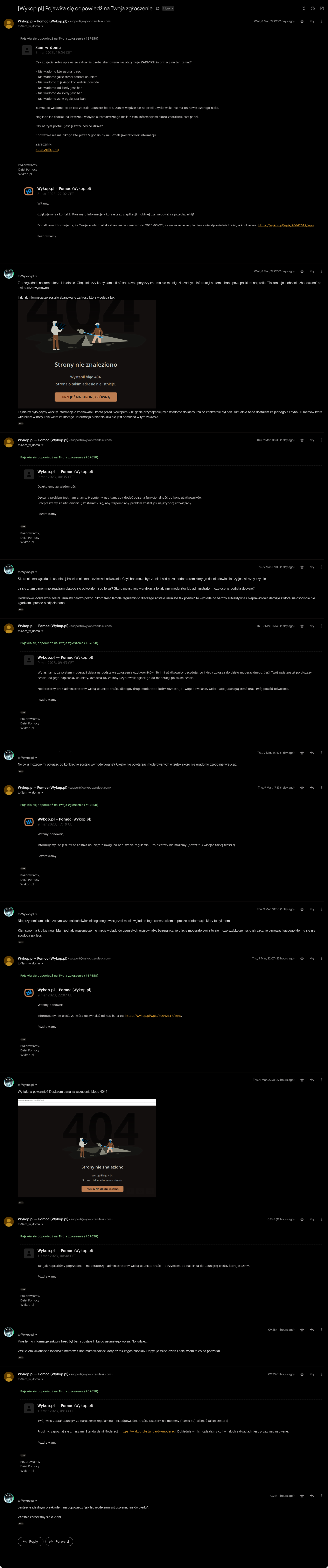 @cherronimo O witam ( ͡° ͜ʖ ͡°) to ja userrrr też zostałem zbanowany za "naruszenie regulaminu nieodpowiednie treści", bo wdałem się w dyskusje z trollem politycznym, który wielbi PO i zadał mi głupie pytanie, więc się zapytałem czy jest niepełnosprawny intelektualnie, troll się poczuł urażony tym pytaniem i mnie zgłosił, moderacja natychmiast zareagowała wlepiając mi bana na miesiąc (do 18 kwietnia), a ponad 14 godzin zwlekali z rozpatrzeniem mojego odwołania, w którym wyjaśniłem, że zostałem sprowokowany przez trolla, nie odrzucenie z automatu i uj ¯\_(ツ)_/¯ napisałem dzisiaj oburzonu do nich wyjaśniając to jeszcze raz, że czemu banują ludzi za pytanie czy jest ktoś niepełnosprawny (XD), a odrzucają zgłoszenia jak ktoś Cie wyzwie od osłów i tumanów. Na to moderacja odpowiedziała, że bana otrzymałem, bo w przeciągu ostatnich trzech mies miałem bana i dwa ostrzeżenia, no to fakt tylko że ostatni ban dostałem za podważenie władzy putina, ale o tym nie wspomnieli