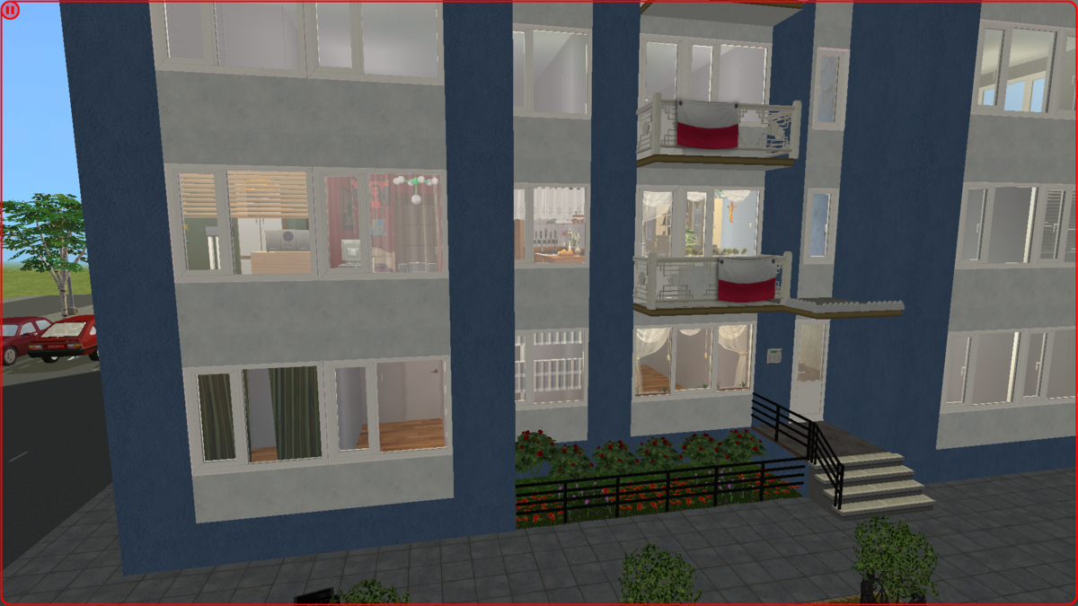 Blok który widzicie niedawno przeszedł termomodernizację, czyli ocieplenie styropianem i pomalowanie go kolorowe paski. Na 1 piętrze tego ośmiopiętrowego (bo przy dziesięciu gra się niestety wiesza, limit 2200 odcinków ścian też się wyczerpuje) wieżowca mieszka rodzina Kowolików składająca się z Gertrudy i Eugeniusza którzy są małżeństwem od 20 lat i ich dwójki dzieci - 15 letniej Żanety i 20 letniego Gerarda nazwanego tak na cześć Gerarda Cieślika, wybitnego reprezentanta Polski w piłce nożnej. Zajrzyjmy do ich czteropokojowego mieszkania od góry.