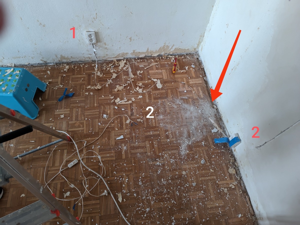 2. "Przy okazji" kumpel zapytał o wystające kable ze ściany bo chce się tego pozbyć. No to ciągniemy. Kable skręcone w jednym miejscu i zaizolowane byle jak i byle czym - poloplaster - serio.