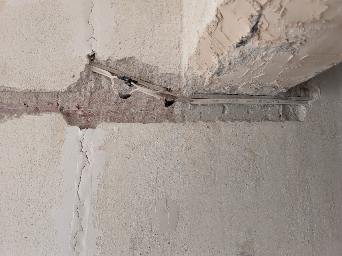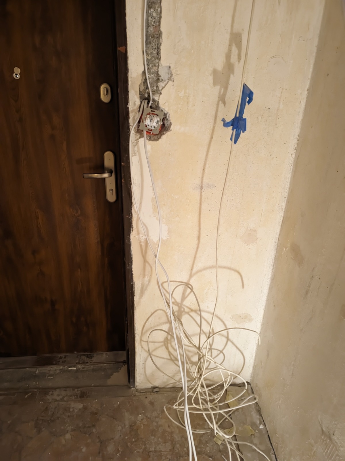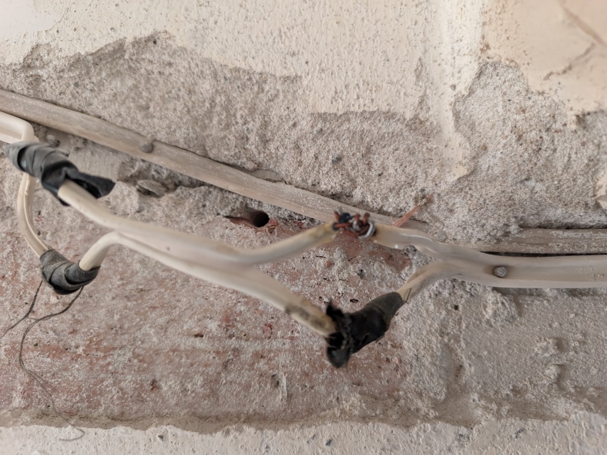 Kabel łączył puszkę z korytarza z puszką w salonie. Udało się go wymienić na nowy bez większej demolki ścian.