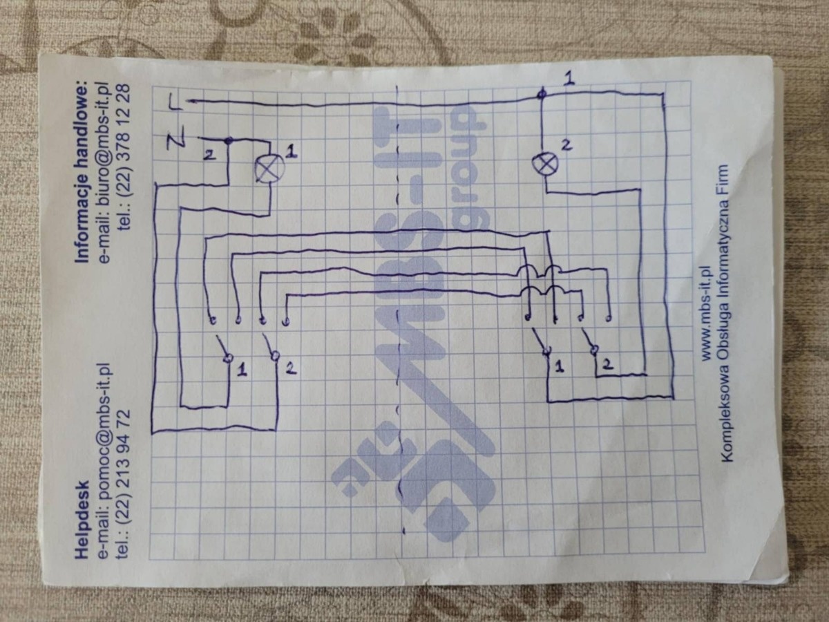 Kumpel dał się przekonać na dwa punkty świetlne w korytarzu w układzie z zastosowaniem wyłączników schodowych. Parę kabli i wywala fazę xD