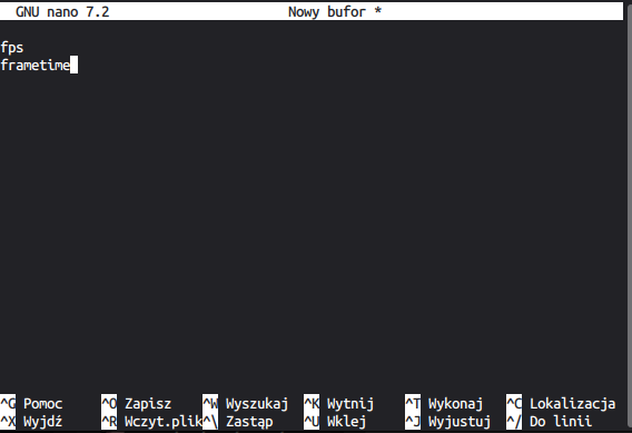 W moim przypadku nazwa to nowy bufor, bo odpaliłem sam edytor, u was będziecie edytować plik MangoHud.conf.
