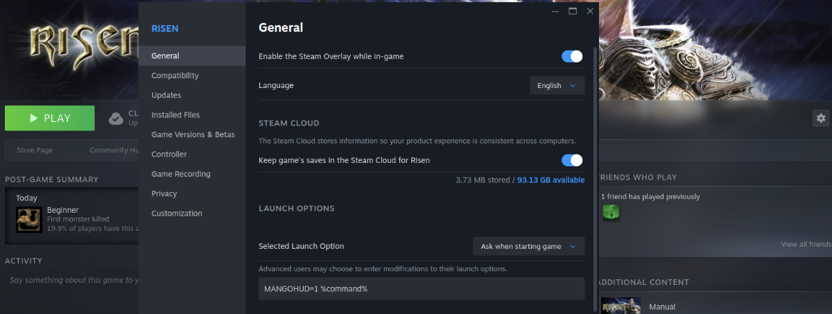 [ 4 ] Testujemy czy program działa. Odpalamy grę przez zielony przycisk Steama i w lewym górnym rogu ekranu powinno się wyświetlić okienko z klatkami na sekundę i frametime. Gitarka, prawie gotowe. Zamykamy grę. Jak coś nie działa, musicie prześledzić czy wszystko zrobiliście według instrukcji. Jeżeli wasz Steam był instalowany przez Flatpacka, to musicie zainstalować MangoHuda też flatpackowego. Tam konfiguracja jest trochę inna, ale z pomocą przyjdzie program Goverlay. On graficznie zrobi wszystko to, co my robimy ręcznie.