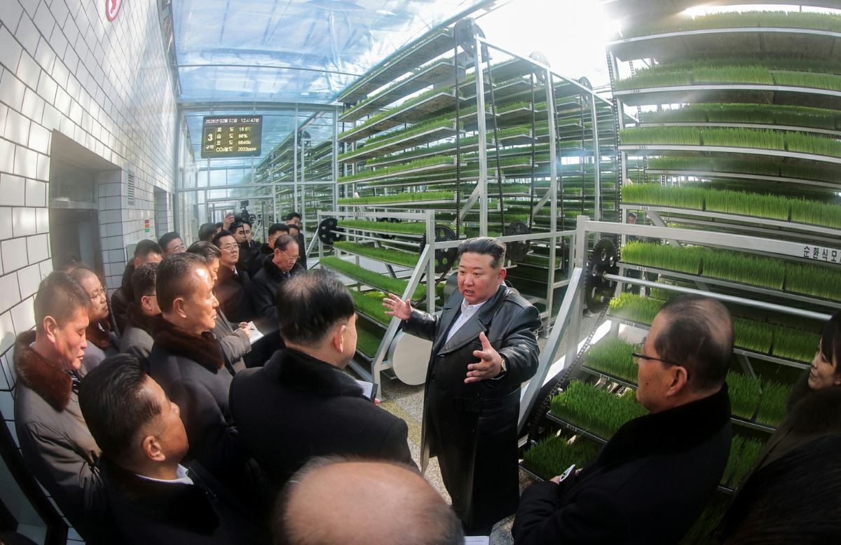 A tu Kim prezentuje najlepszą północnokoreańską trawę, uprawianą według najlepszych wzorców podanych przez Wodza <pilnie notuje>