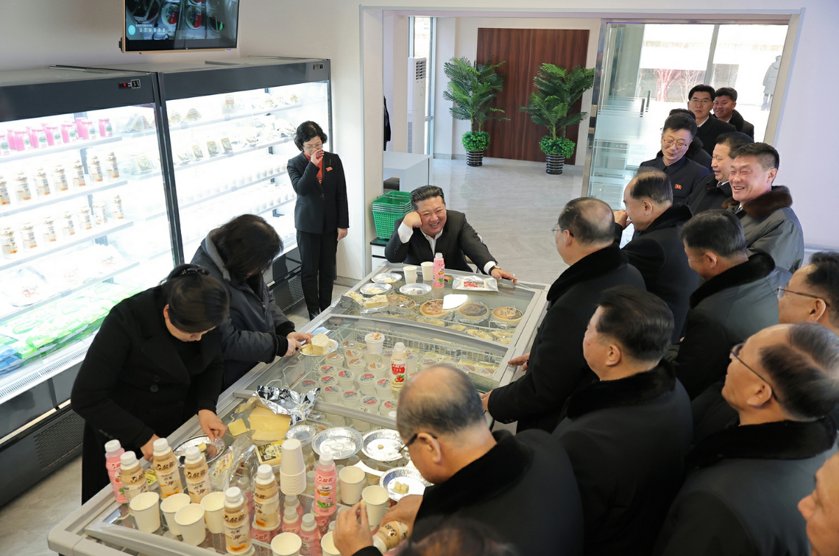 Kim opowiada żart przy testowaniu nabiału, wszyscy się śmieją. Ale prawo testowania wyrobów ma jedynie Wódz, nikt inny.
