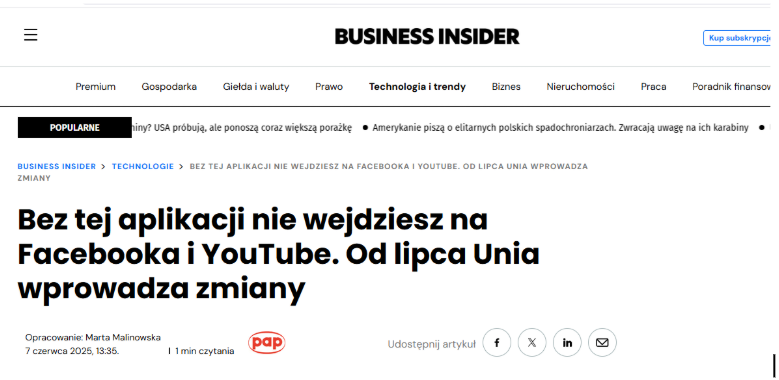 Z informacji tej wynika, że aplikacja będzie jedynie sprawdzać, czy użytkownik ukończył 18 lat. Tym samym nie znajdzie zastosowania w serwisach przeznaczonych także dla osób niepełnoletnich.