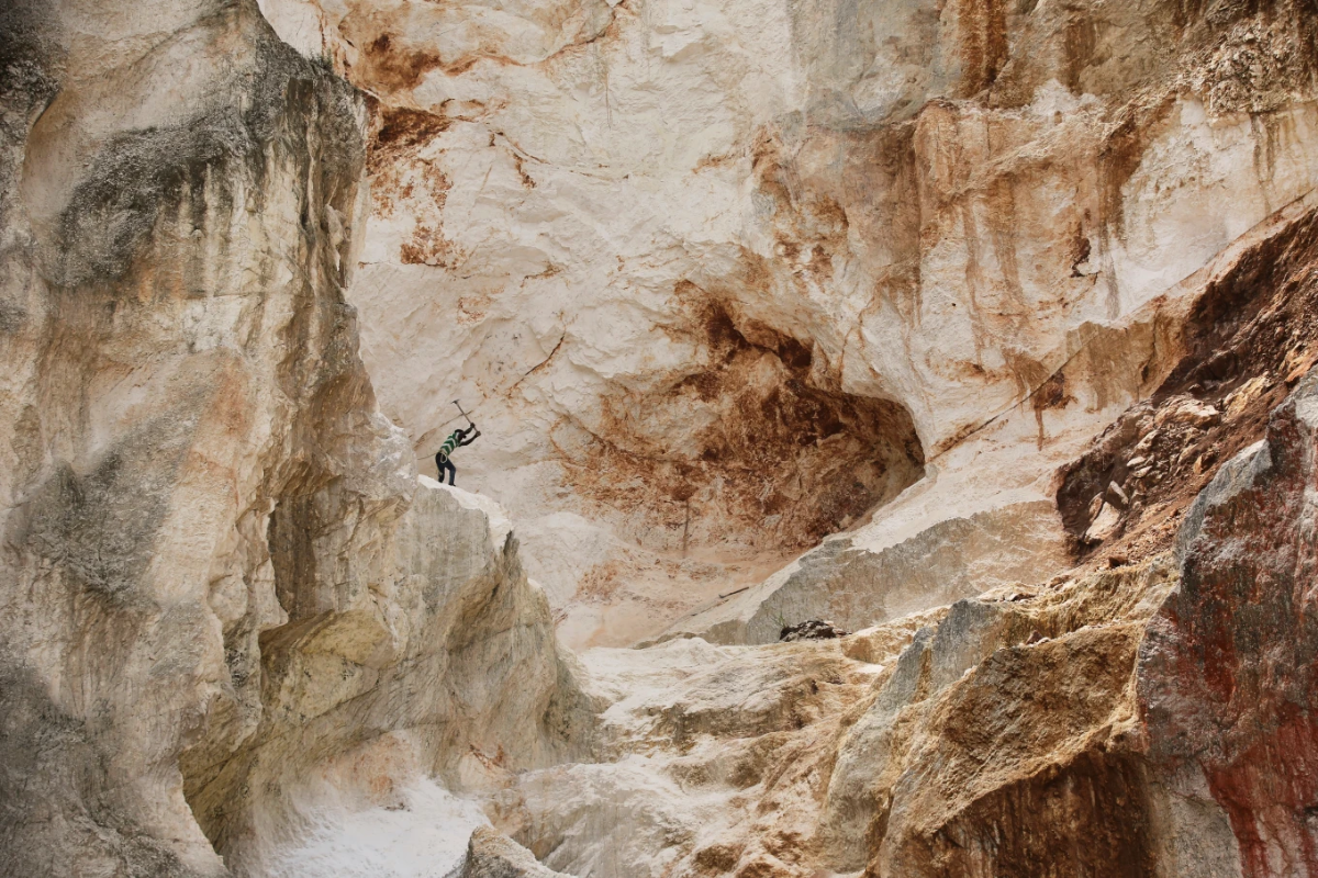 Robotnik ubija skałę, aby uzyskać żwir i piasek w Kenscoff, dzielnicy Port-au-Prince na Haiti, 24 lipca 2025 r. (AP Photo/Odelyn Joseph)