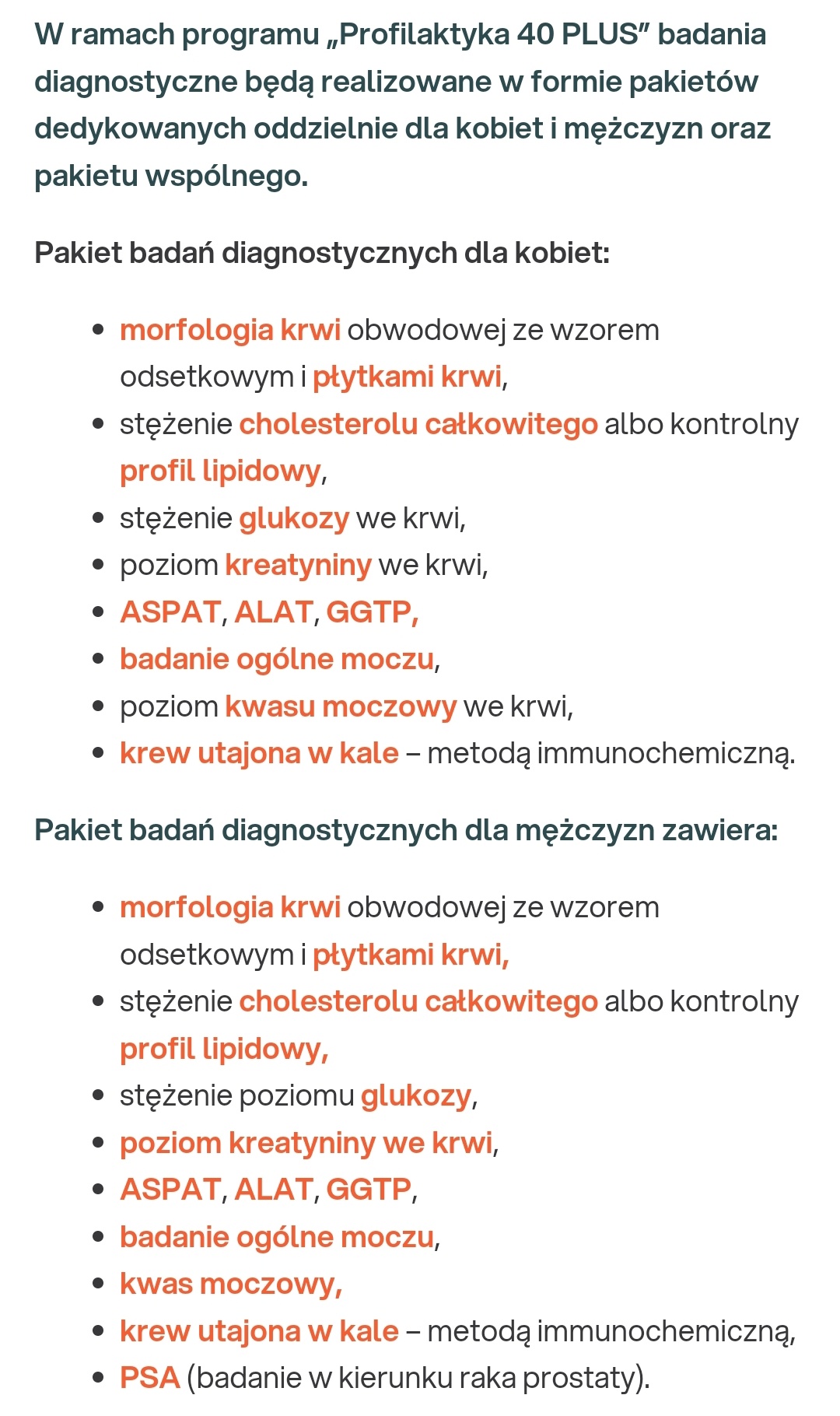 I badania wspólne dla obu płci: