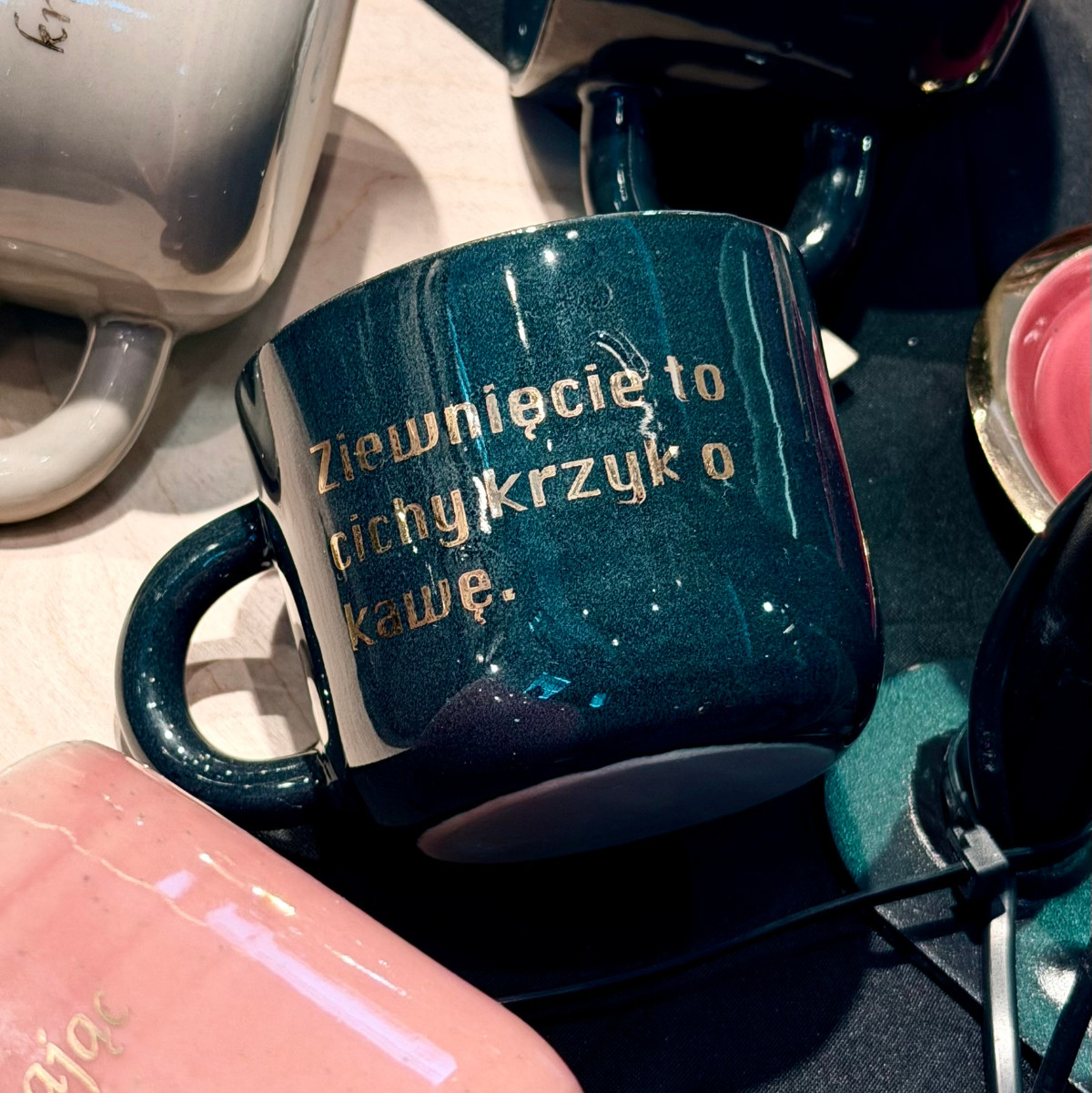 I pamiętajcie, jak głosi poniższy kubek: Ziewnięcie, to cichy krzyk o kawę