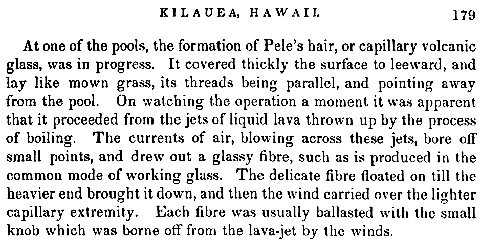 Włosy Pele nie mają nic wspólnego z legendą brazylijskiego futbolu, lecz zawdzięczają swoją nazwę Pele — hawajskiej bogini ognia i wulkanów. Najczęściej występują w okolicy wulkany Kilauea na Hawajach. Są to złocisto-brązowe pasma szkliwa wulkanicznego przypominające ludzkie włosy lub suchą słomę, które mogą osiągnąć długość do 2 metrów i 0,3 milimetra grubości, choć zazwyczaj są znacznie krótsze i cieńsze - mają od 5 do 15 cm. Włosy Pele powstają w wulkanach na całym świecie.
